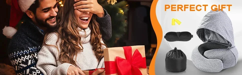 Features a built-in hood that blocks light and adds privacy—perfect for airplanes and public spaces. When not needed, the hood tucks neatly away for a standard U-shaped pillow. Includes bonus eye mask and earplugs for a complete travel-sleep kit.