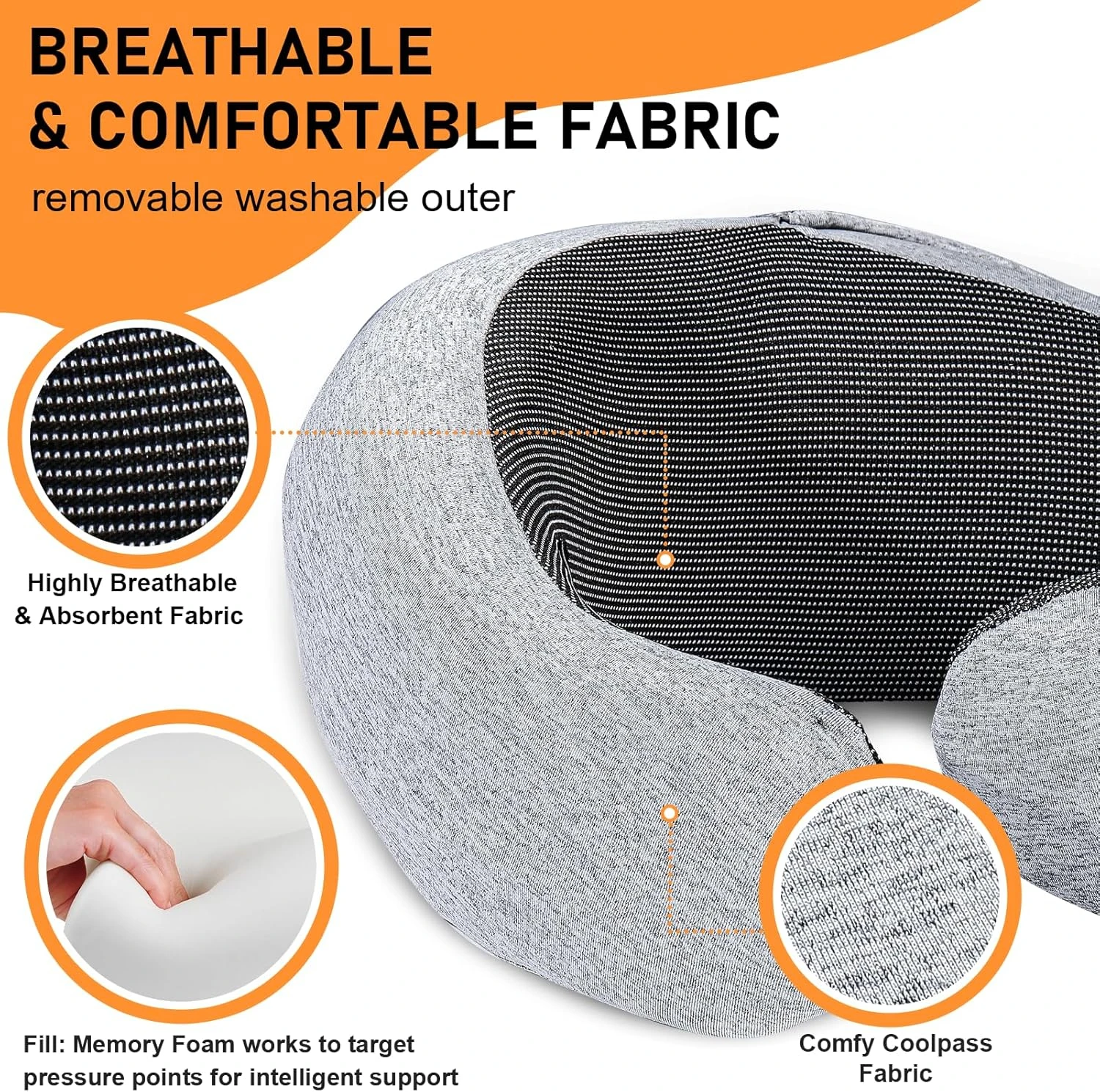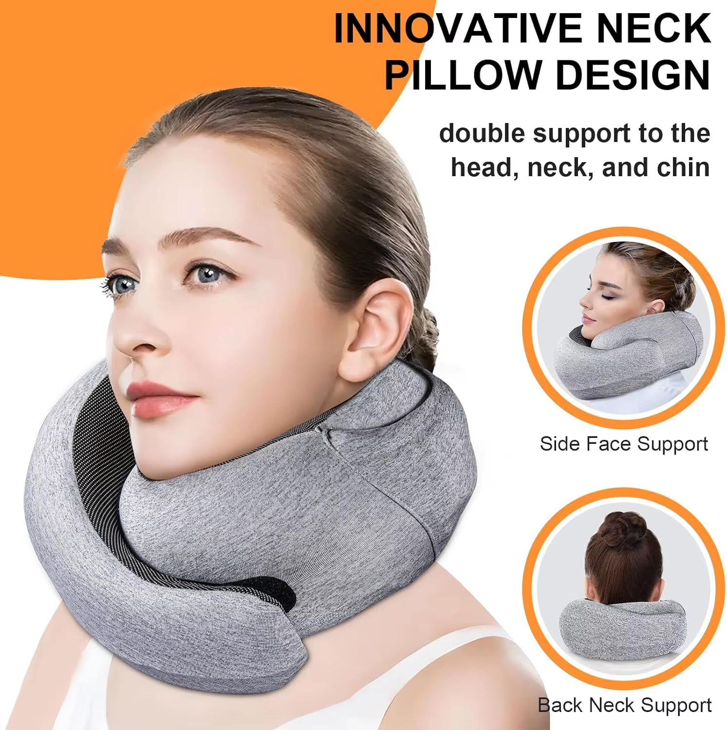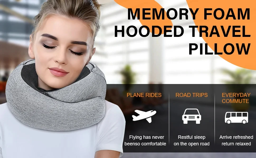 Hooded Travel Neck Pillow for Airplane & Car – Memory Foam