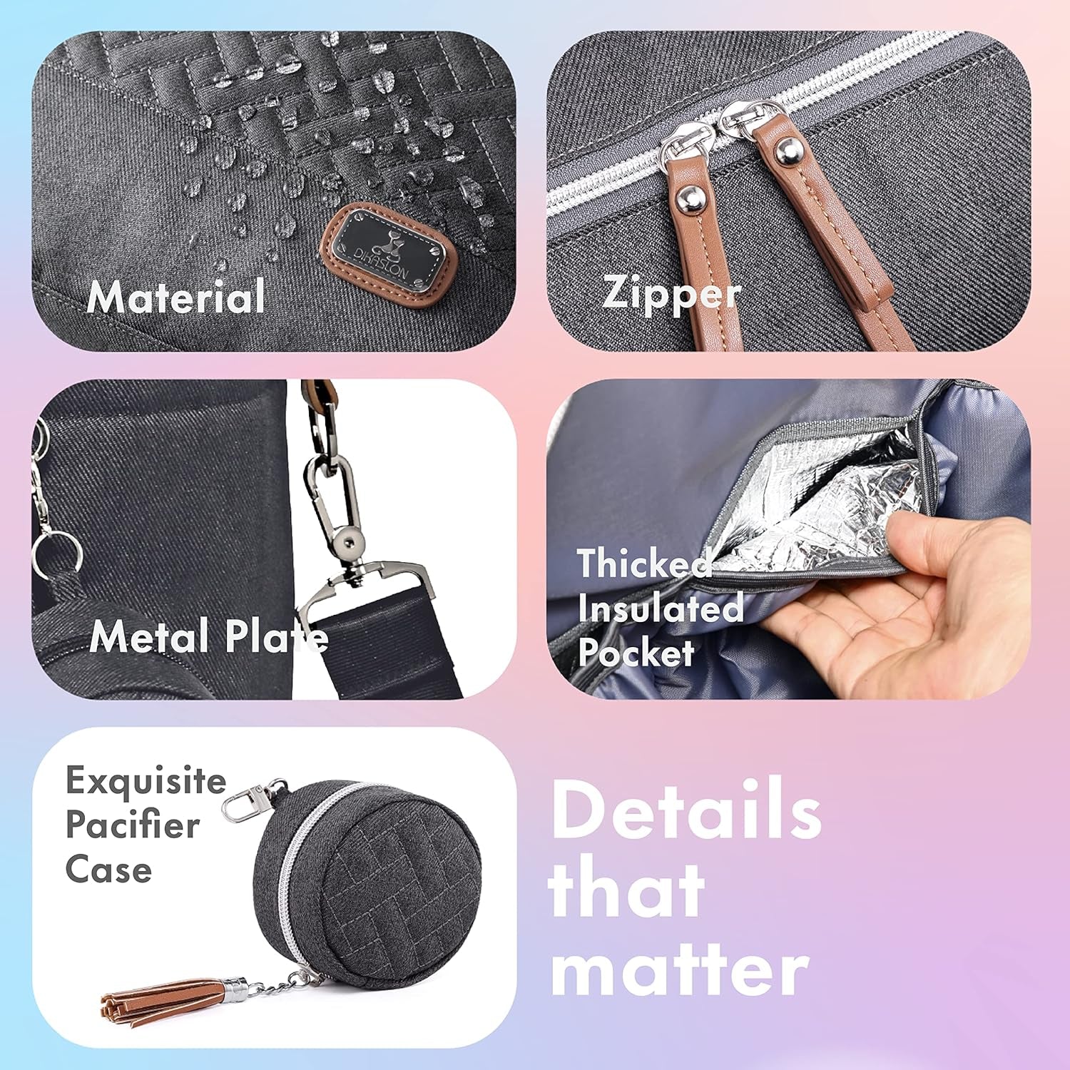 πΆ 5 interior pockets for diapers & wipes