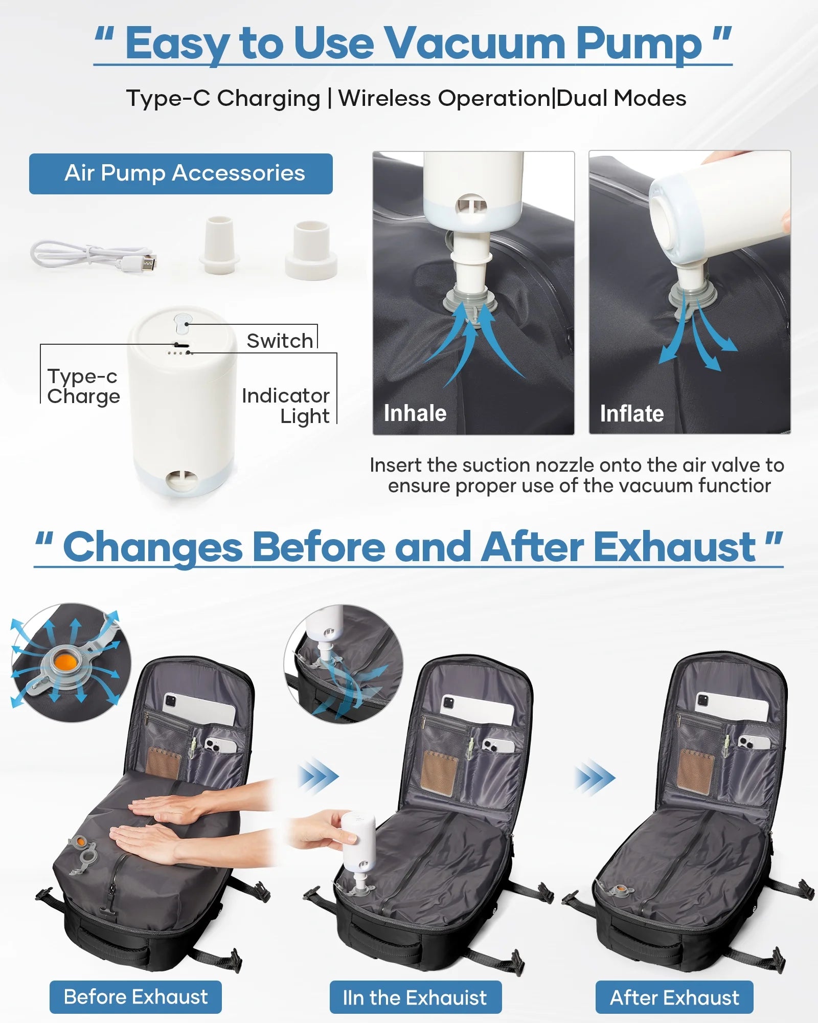 Multifunctional Vacuum Compression Travel Backpack – Air Travel, Work, School & Everyday Use